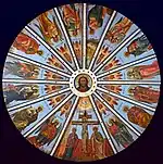 Mais l'iconographie de Kargopol reste différente de celle de Novgorod par sa simplicité naïve typique de la province. Certains de ses peintres ont été formés par l'école de Rostov, plus légère, plus lyrique, tournée vers le monde spirituel de l'homme. La palette des couleurs devient alors plus discrète. Mikhaïl Alpatov remarque qu'à Rostov prévalent les dégradés de bleu, de rose tendre, de mauve, de jaune crémeux[10].