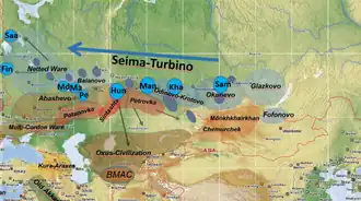 L'ensemble de techniques avancées de métallurgie du bronze associées aux cultures de Seima-Turbino s’est répandu rapidement dans une immense région du nord de l’Eurasie vers Les résultats des études génétiques soutiennent la théorie selon laquelle les premiers locuteurs ouraliens sont les auteurs de l'expansion des traditions métallurgiques de Seima-Turbino[7].