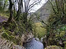 Plus haut, une falaise domine la vallée, d'où coule la cascade dominante des Cuves, formant un cul-de-sac.