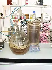 Le déchet toxique des nitrites de la première communauté bactérienne est ensuite utilisé comme métabolite par la seconde. Ce phénomène de symbiose est appelé syntrophie[9]. Cette seconde étape de nitratation transforme ensuite le nitrite en nitrate:
