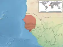 Cette espèce se rencontre en Guinée-Bissau et en Gambie[1].