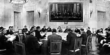 Considérée comme l’un des textes préparatoires de la Charte des Nations unies[2], la Déclaration des Quatre Nations[1] (Joint Four-Nation Declaration) est signée par les membres de la conférence de Moscou tripartite ainsi que par la Chine.