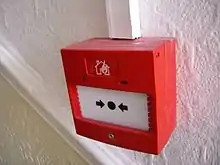 - Dans les établissements où l'évacuation nécessite des moyens importants (personnes handicapées, nombre élevé de personnes à évacuer[3]), le déclencheur manuel est relié à un système de déclenchement de l’alarme restreinte. Le tableau de signalisation de l’alarme restreinte est situé dans un emplacement non accessible au public, visible du personnel de surveillance. Celui-ci dispose d’un délai (au maximum 5 minutes) lui permettant d’annuler le déclenchement de l’alarme en cas de déclenchement manuel non motivé (déclenchement accidentel ou malveillant)[4].