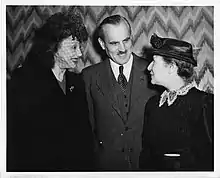 À la suite de l'Anschluss (unification de l'Allemagne avec l'Autriche le ), Meitner perdit sa nationalité autrichienne[88]. James Franck lui avait alors proposé de parrainer son immigration vers les États-Unis et Bohr lui avait offert une place temporaire dans son institut, mais lorsqu'elle s'était présentée à l'ambassade du Danemark pour demander un visa, on lui dit que son passeport autrichien n'était plus reconnu par le Danemark[89]. Le 13 juillet 1938, Meitner partit finalement pour les Pays-Bas avec le physicien hollandais Dirk Coster. Avant son départ, Otto Hahn lui avait donné une bague en diamant héritée de sa mère, qu'elle pourrait vendre si nécessaire. Elle finit par réussir à se mettre à l'abri, mais avec seulement ses vêtements d'été. Meitner déclara plus tard qu'elle avait quitté l'Allemagne pour toujours avec seulement 10 marks dans son sac à main. Avec l'aide de Coster et d'Adriaan Fokker, elle réussit à s'envoler pour Copenhague, où elle fut accueillie par Frisch, puis resta avec Niels et Margrethe Bohr dans leur maison de vacances à Tisvilde. Le 1er août 1938, elle put finalement se rendre en train à Stockholm, où elle fut accueillie par Eva von Bahr[90].