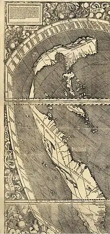 Représentation des Andes et des montagnes Rocheuses (1507) (Planisphère de Waldseemüller).