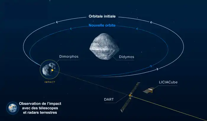 - DART, Hera Missions chargées de tester la technique de déviation basée sur un impact.