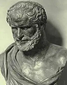 Démocrite est souvent classé arbitrairement par les exégèses contemporains parmi les présocratiques[8] du point de vue philosophique, bien qu'il soit un peu plus jeune que Socrate (469-399), et qu'il soit mort quelque trente années après lui.