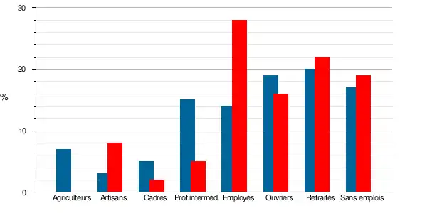 | Ouvriers | 44 | 16,4 | 44 | 18,6 | 16,8 | 18,6 | 13,5 | 14,9 |