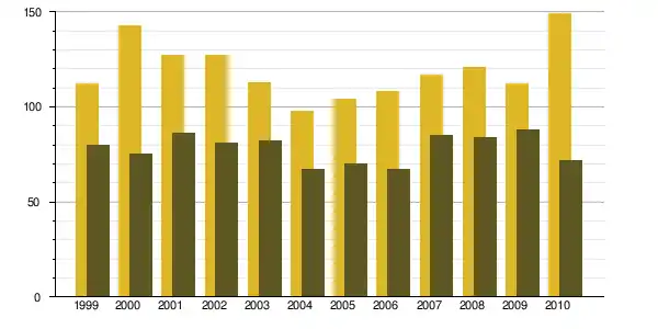 | 1968 à 1975 | 1975 à 1982 | 1982 à 1990 | 1990 à 1999 | 1999 à 2009 | ||