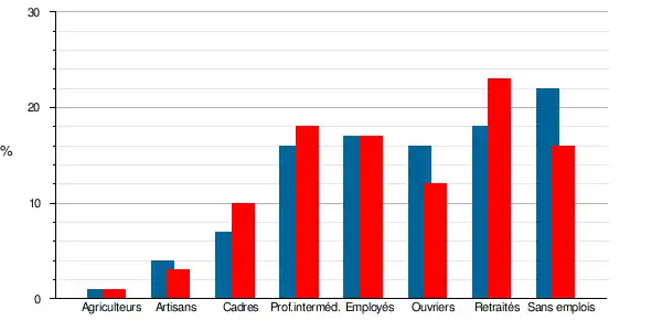 | Artisans, commerçants, chefs d'entreprise | 223 | 3 | 248 | 3,7 | 3,7 | 4,2 | 3,3 | 3,5 |