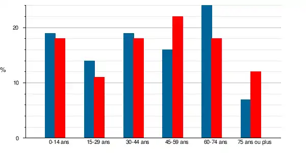 La population s'est rajeunie entre 1999 et 2009, le taux des personnes de 60 ans et plus passant de 31 % à 30 %, alors que parallèlement les populations du département et de la France ont quant à elles vieilli, passant respectivement de 20 à 23 % pour le Département et de 20 à 23 % pour la France métropolitaine.