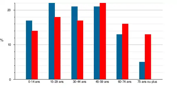 La population a vieilli entre 1999 et 2009, le taux des personnes de 60 ans et plus passant de 18 % à 29 %, à l'instar des populations du département et de la France qui sont aussi passées respectivement de 20 à 23 % pour le Département et de 20 à 23 % pour la France métropolitaine.