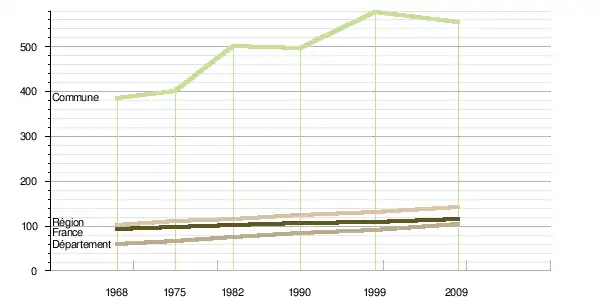 Le taux de mortalité est quant à lui passé de 7,8 ‰ sur la période 1968-1975 à 7,2 ‰ sur la période 1999-2009[5]. Celui du département était sur cette dernière période de 7,6 ‰ et celui de la France de 8,8 ‰[8].