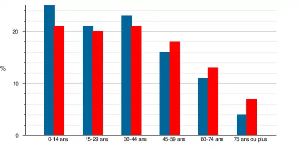 La population a vieilli entre 1999 et 2009, le taux des personnes de 60 ans et plus passant de 15 % à 20 %, à l'instar des populations du département et de la France qui sont aussi passées respectivement de 18 à 20 % pour le département et de 20 à 23 % pour la France métropolitaine.