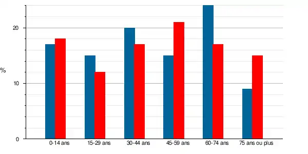 La population s'est rajeunie entre 1999 et 2009, le taux des personnes de 60 ans et plus passant de 33 % à 32 %, alors que parallèlement les populations du département et de la France ont quant à elles vieilli, passant respectivement de 20 à 23 % pour le Département et de 20 à 23 % pour la France métropolitaine.