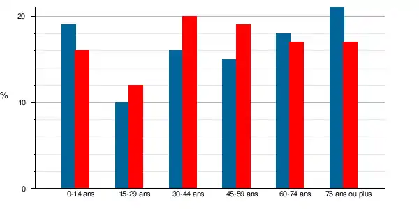 La population s'est rajeunie entre 1999 et 2009, le taux des personnes de 60 ans et plus passant de 39 % à 34 %, alors que parallèlement les populations du département et de la France ont quant à elles vieilli, passant respectivement de 20 à 23 % pour le Département et de 20 à 23 % pour la France métropolitaine.