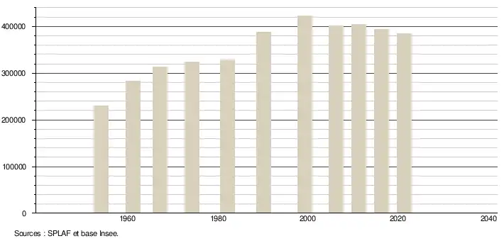 En 2021, le département comptait 384 315 habitants[Note 1], en diminution de 3,44 % par rapport à 2015 (France hors Mayotte : +1,84 %).