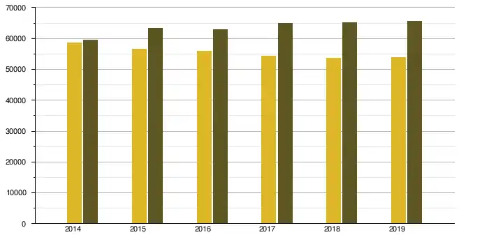 En 2014, 58 647 naissances ont été dénombrées contre 59 563 décès. Le nombre annuel des naissances a diminué depuis cette date, passant à 53 863 en 2019, indépendamment à une augmentation, mais relativement faible, du nombre de décès, avec 65 526 en 2019. Le solde naturel est ainsi négatif et diminue, passant de −916 à −11 663[4].
