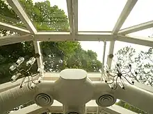 Une paire de portes d'entrée en acier de 1,27 cm d'épaisseur qui s'ouvre sur la zone du bunker mesure environ 3,3 mètres du rez-de-chaussée au point le plus bas du plafond. Le plafond présente une conception robuste en forme de vague qui monte et descend d'environ 40 cm et il est recouvert d'acier. Cette conception est à nouveau utilisée pour minimiser l'effet d'une éventuelle explosion et pour bénéficier de la déviation des ondes de souffle.