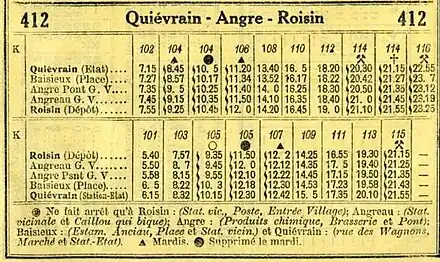 | Tableaux horaires[note 1] | 412 (1931) | |