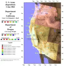 Délimitations et répartition des troupes dans les départements de Californie et d'Oregon