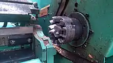 - Deux broches qui entraînent le billon. Ces broches sont couramment constituées de deux ou trois broches concentriques qui se retirent au fur et à mesure du déroulage afin de permettre de toujours transmettre un couple important dans le billon. Dans les dérouleuses perfectionnées le billon est placé précisément afin de dérouler le plus gros cylindre inscrit dans le billon. Certaines dérouleuses sont à entrainement périphérique et peuvent s'affranchir des mors afin dérouler des bois de plus petit diamètre.