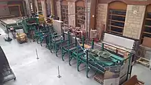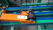 - Une roue codeuse, roue équipée d'un codeur ou autres méthodes visant à mesurer la longueur du ruban déroulé afin de piloter le massicot.