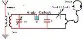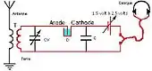 Un circuit composé d'une pile, d'un potentiomètre et d'un écouteur applique une tension au détecteur électrolytique (cuve d'électrolyse). La polarisation électrolytique de l'anode est très rapide. L'anode est un fil de platine très fin de 1/100 de millimètre. Le signal alternatif du circuit inductance-condensateur dépolarise partiellement l'anode aux rythmes de la modulation d'amplitude, ce qui oblige la pile électrique à fournir un nouveau courant pour repolariser l'anode. L'écouteur parcouru par ce courant repolarisant aux rythmes de la modulation d'amplitude fait entendre une image de la modulation (la cathode est un petit godet de platine ou de plomb ou une plaque métallique ou un gros fil de platine ou de plomb).