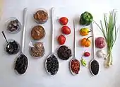 Les produits généralement utilisés sont la viande de bœuf ou de mouton, le riz, du poisson séché et du yet, de la poudre et/ou de la pâte d'arachide, des graines de nététou (Parkia biglobosa), du concentré de tomate et un assaisonnement[3].