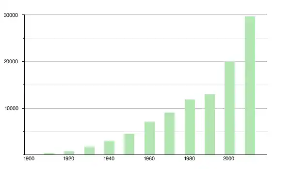 | 1930 | 1 674 | ▲ +119,69 % | |