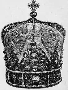 - Couronné avec cette phrase officielle en latin de « Simperio totius Russiae otitus. Rex fuit, honorem regium habuit, aeternumque in Russia suis reliquit».