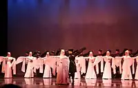 Le ministère français de la Culture inclut le les danses géorgiennes dans l'inventaire du patrimoine culturel immatériel en France[7], à partir d'un travail documentaire réalisé par Simone Tortoriello et l'association Ïle-du-Monde[8], en reconnaissance de l'apport qu'elles ont représenté en Île-de-France depuis près d'un siècle. En effet les émigrations géorgiennes, politiques durant les années 1920 et 1940, économiques au XXIe siècle, ont favorisé la création de troupes amateurs en Asie mineure, en Europe et aux États-Unis[Note 2]. Pour la région parisienne, dans l'immédiat après guerre, deux chorégraphes géorgiens exilés, Chota Abachidzé (1915-1995) et Sergo Kokhréidzé[9] forment la 1re génération d'origine géorgienne, née en France, et produisent des spectacles aux fêtes communautaires. Au début des années 1970, Pierre-Alexis Kobakhidzé forme à son tour une quarantaine de personnes et produit des spectacles semi-professionnels[10] — dans le cadre de Musigrains —. Depuis les années 2000, Lali Djashiashvili, Beka Noniashvili et Irakli Oboladze[11] — dans le cadre du Centre culturel géorgien Lazi — et Sergo Kleri — dans le cadre de l'Ensemble Tamarionni issu de la Paroisse orthodoxe géorgienne Sainte-Tamar de Villeneuve-Saint-Georges — forment et produisent des spectacles associatifs. Depuis les années 2010, Zurab Tsutskiridze, un ancien professionnel de ballet géorgien, forme — dans le cadre du Studio de danse géorgienne Deisi — les jeunes générations à Paris, Strasbourg, Lyon, Valence et Nice[12].