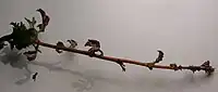 La galle cause des rosettes[4] sur son hôte en inhibant le développement des pousses. La rosette est formée de 8 à 40 (ou plus encore) feuilles fines déformées avec des pétioles extrêmement réduits.