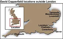 Le , Dickens se rend dans le Norfolk à Norwich et Yarmouth, en compagnie de deux amis proches, John Leech (1817-1864) et Mark Lemon (1809-1870)[13], le premier, illustrateur du magazine satirique Punch et du Chant de Noël de Dickens (1843), l'autre, fondateur et rédacteur en chef du même Punch, et bientôt collaborateur de Dickens à Household Words, puis coauteur avec lui en 1853 de la farce Mr Nightingale's Diary[14]. Les deux villes, surtout la seconde, deviendront importantes dans le roman, et Dickens fait savoir à Forster que Yarmouth lui a semblé « des plus étranges » (« the strangest place in the world ») et qu'il va « sans aucun doute essayer d'en faire quelque chose » (« certainly try my hand at it »)[15]. Au cours d'une promenade dans les environs de Yarmouth, Dickens remarque un écriteau indiquant la petite localité voisine de Blunderston, qui deviendra dans son roman le village de « Blunderstone » où David naît et passe sa petite enfance[11].