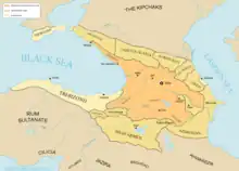 L’occasion de reprendre le territoire qui avait servi de berceau à leur famille devait se présenter en 1203 lorsque l’empereur Alexis III Ange (r. 1195-1203) fit saisir une somme d’argent considérable que Tamar destinait à divers monastères géorgiens d’Antioche et du mont Athos. Furieuse, Tamar se servit de ce prétexte pour agrandir son royaume le long de la côte sud-ouest de la mer Noire dont la population était en large partie de langue géorgienne[19],[20].