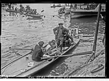 |   Billington en septembre 1909, attendant le départ de la traversée de Paris à la nage. | |