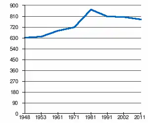 - (sr + en) « Livre 20 : Vue d'ensemble comparative de la population en 1948, 1953, 1961, 1971, 1981, 1991, 2002 et 2011, données par localités) » [PDF], Pages du recensement de 2011 en Serbie - Institut de statistique de la république de Serbie, (consulté le )