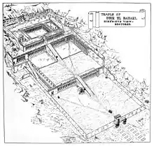 Plan des temples de Montouhotep II, Hatchepsout et Thoutmôsis III à Deir el-Bahari. | ||