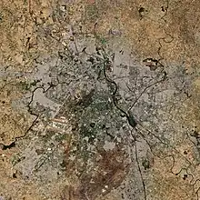 L'arête de Delhi est un petit massif qui trouve son origine dans la chaîne des Aravalli et qui entoure les parties ouest, nord-est et nord-ouest de la ville. Elle atteint l'altitude de 318 m[38].