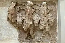 Détail de l'assemblée des Dieux représentée sur la frise du trésor de Siphnos.