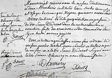 Extrait du procès-verbal de l'arrestation de Diderot (France, Archives nationales).