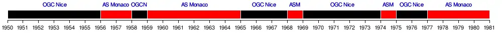 | OGC Nice | depuis 1932 | Le club perdit brièvement en 1934 son statut professionnel. |