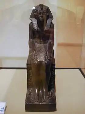 Statue colossale d'un roi de la XIIIe dyn., ensuite usurpée par un dirigeant Hyksôs de la XVe dyn.[note 1]Musée du Caire.