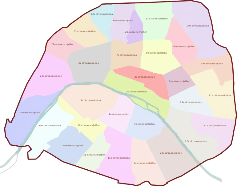 La constitution de 1958 ayant réinstauré un mode de scrutin uninominal majoritaire par circonscription, la deuxième circonscription de la Seine de 1946 est redécoupée en 12 circonscriptions : 6e, 7e, 20e, 21e, 22e, 23e, 24e, 25e, 26e et 27e, ainsi que le 1er arrondissement (partie ouest de la nouvelle 1re circonscription et le 2e arrondissement (partie ouest de la nouvelle 2e circonscription).