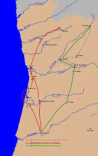 Principaux mouvements des forces anglo-portugaises lors de la deuxième invasion française du Portugal.