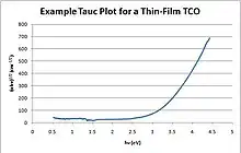 Le diagramme de Tauc est un graphique communément utilisé pour déterminer le band gap optique d'un matériau - en général un semi-conducteur. Partant d'une mesure du coefficient d'absorption (noté en général ) en fonction de la longueur d'onde par spectroscopie UV-visible, la méthode consiste à représenter la quantité en fonction de l'énergie . La constante dépend de la nature du band gap, elle vaut 1/2 pour un band gap direct et 2 pour un band gap indirect. La valeur du gap est obtenue en extrapolant la partie linéaire de la courbe, à l'intersection de cette droite avec l'axe des abscisses.