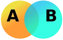 La région A et B, où les deux ensembles se chevauchent, est appelée l'intersection de A et B, et est notée A ∩ B. Par exemple, l'intersection des deux ensembles est non vide, parce qu'il y a des points qui représentent des créatures qui sont à la fois situées dans le cercle orange et dans le cercle bleu.