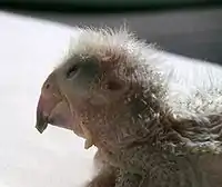 Diamant sur la mandibule supérieure d'un oisillon de Psittacidae deux semaines après l'éclosion