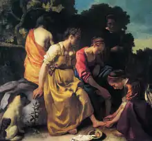 L'atmosphère solennelle du tableau est inhabituelle pour une scène représentant la déesse Diane, et la nymphe lavant les pieds du personnage central a attiré l'attention des critiques et des historiens, tant pour son activité que pour ses vêtements contemporains. Plutôt que l'illustration directe d'un moment dramatique des mythes bien connus à propos de Diane, la scène montre une femme et ses servantes tranquillement occupées à sa toilette. Le thème d'une femme dans un moment privé et réfléchi deviendra plus fort dans les peintures de Vermeer à mesure de la progression de sa carrière.