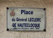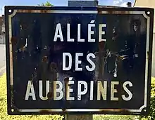 - Souvenirs des deux guerres : Américains (rue des), Gabriel-Péri (rue), Général-Dupont (rue du), Général-de-Gaulle (place du), Général-Leclerc-de-Hautecloque (place du), Georges-Guynemer (rue), Libération (place de la), Roland-Garros (rue), Verdun (rue de)